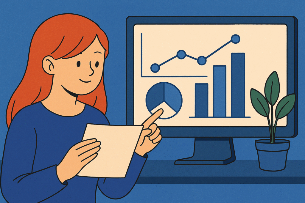 * แผนภูมิแท่ง/วงกลม (Bar/Pie Chart): เปรียบเทียบสัดส่วน เช่น สัดส่วนคลิกจากอุปกรณ์ต่างๆ, สัดส่วน Conversion ตามแคมเปญ
